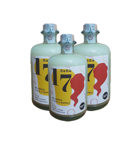 Babà17 è la crema liquore che rispecchia Napoli e il suo dolce tipico, il babà. Oltre all'immancabile rum, il vero e proprio protagonista di questo liquore è proprio il babà. Un nuovo modo per gustare ed assaporare uno dei dolci più conosciuti in Italia e all'estero.