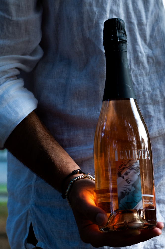 Calispera (Sparkling Rosé): made from Montepulciano grapes and gently dealcoholized to retain freshness and fruity notes. It shows a peach-pink color, fine and persistent perlage, and aromas of strawberry, raspberry, and floral hints.