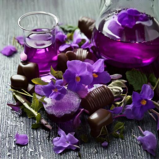 The violet-infused dark chocolate is crafted through meticulous artisanal production, blending the richness of high-quality cocoa with the floral elegance of violet. This refined combination highlights the contrast between the chocolate's deep intensity and the delicate notes of violet, offering a luxurious, harmonious taste. Each bite reflects expert craftsmanship and premium ingredient selection, ensuring velvety texture and exquisite balance.