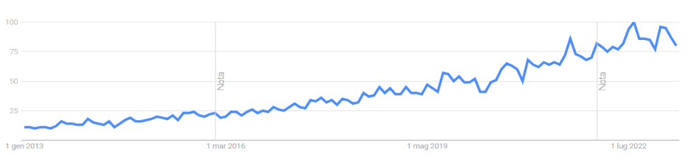 Confrontando questi dati con quelli raccolti da Google, è possibile verificare ulteriormente il crescente interesse degli utenti e come le ricerche online di questo prodotto continuano a registrare eccellenti risultati.