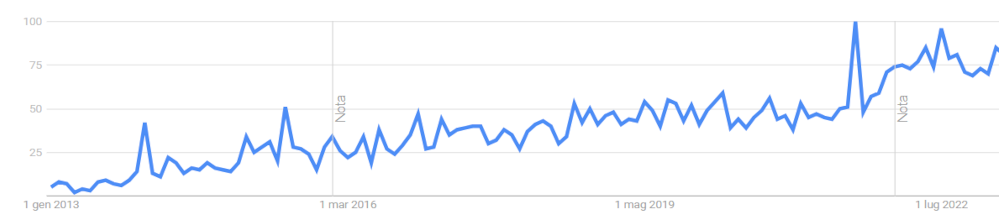 Prendiamo come esempio l'Inghilterra, dove il trend di interesse, dal 2013 ad oggi, è molto simile a quello che abbiamo visto a livello globale.